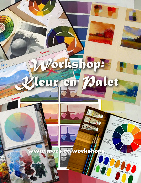Tijd: donderdagavond van 19.30-22.00 of dinsdagochtend van 9.30 tot 12.00 uur Kosten: Voor de totale workshop van 3 lessen betaalt u € 125,- Locatie: Atelier Moes, Nijverheidswerf 15 te Bussum. opgeven kan via een mail naar eduard@moes.cc _______________________________________ Schilderworkshop Kleur 3 avonden dinsdagavond 12, 19 en 26 mei 2026 extra optie: 3 middagen dinsdagmiddag 16, 23 en 30 juni 2026 "ontdek de geheimen van kleur" Alles wat een schilder moet weten over kleur. In deze inspirerende workshop leert u alles wat je als schilder moet weten over kleur. Begrijp de basisprincipes van het kleurenmengen en de kleurtheorie. Maak je eigen kleurencirkel. Breng meer diepte en emotie in je werk. Een must voor iedere schilder die zijn palet beter wil begrijpen en gebruiken. Krijg inzicht in het maken van een eigen kleurpalet.