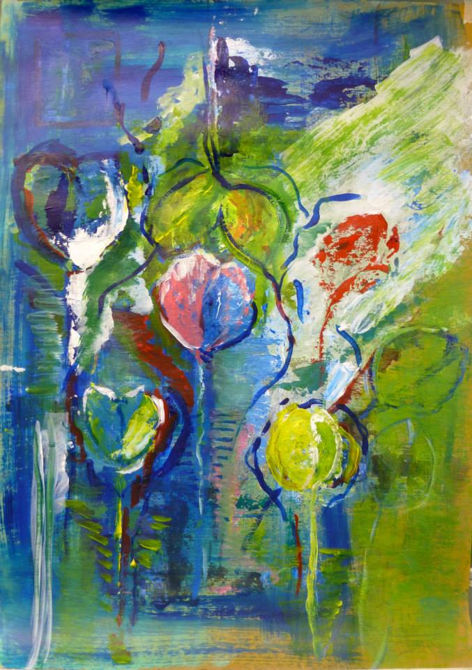 Enkele voorbeelden van schilderijen door cursisten gemaakt. Klik op afbeelding voor vergroting